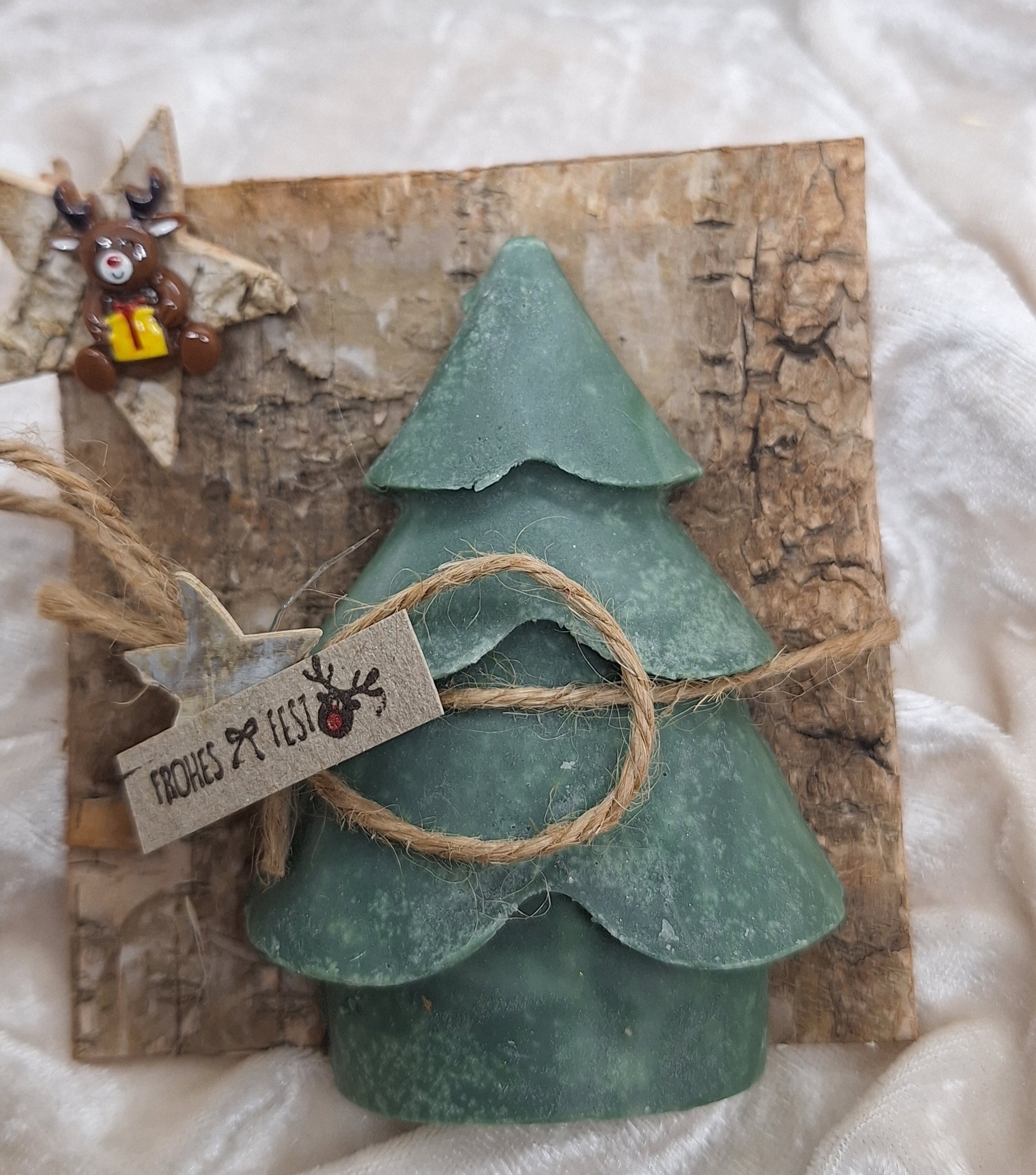 Diese umfilzte Pflanzenöl-Seife mit dem schönen Elch-Motiv (mit Mütze und Schal) möchte gerne mit unter die Dusche, da die Schafwolle einen schönen Peeling Effekt hat, lösen sich alte Hautschüppchen und die pflegenden Öle tun ihr Übriges für ein schönes Hautgefühl nach dem Duschen.