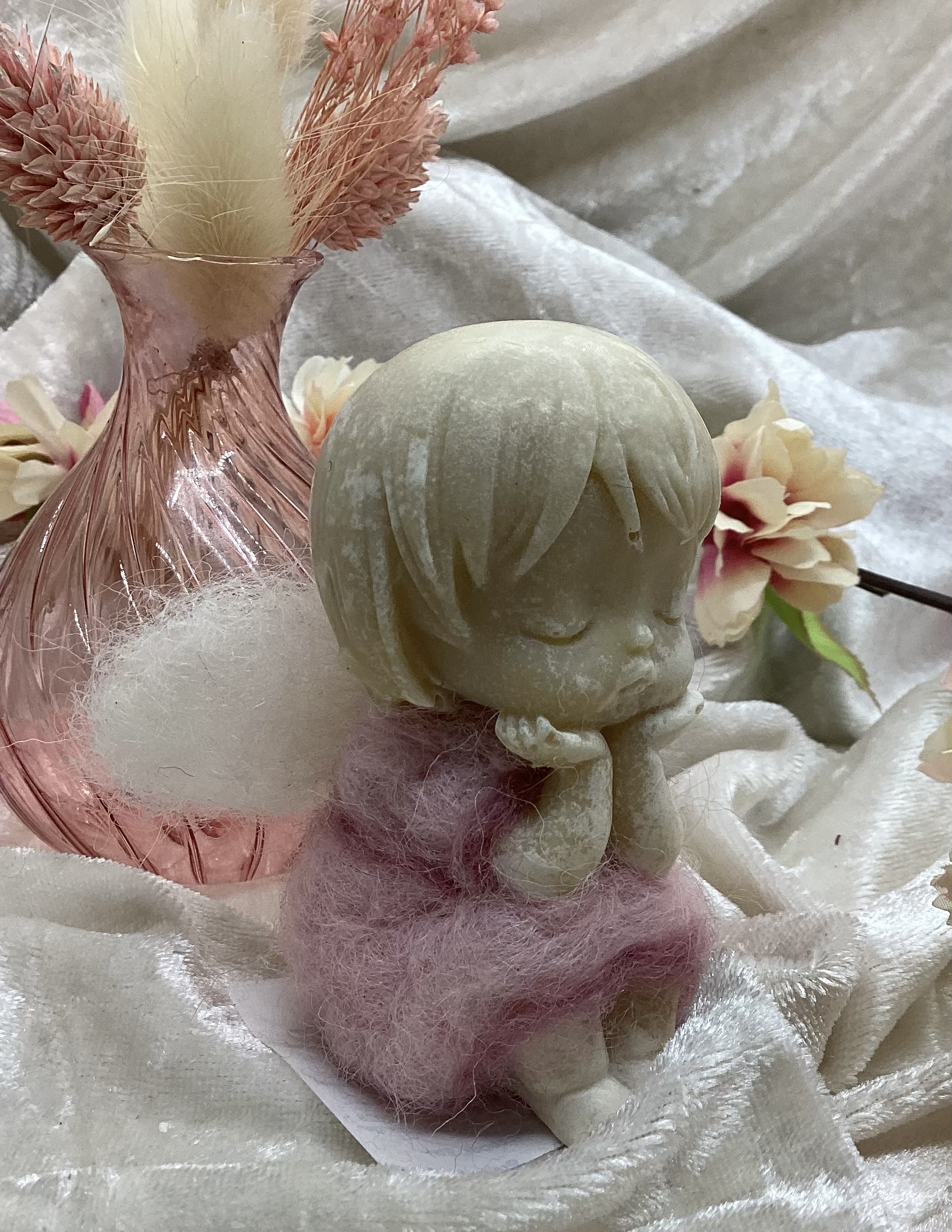 Diese umfilzte Pflanzenöl-Seife mit dem schönen Engelchen-Motiv möchte gerne zu Ihnen.